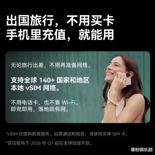 另外还有一个 vSIM 选项,粉饰 140 国,出差党狂喜,但通话还得靠实体单卡。
