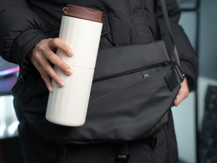 拆开包装的瞬间,我差点以为收到了某个潮牌联名款。奶油白的机身泛着磨砂质感,像块温润的玉,纯色的保温杯盖则像给咖啡加了个“时尚滤镜”。更绝的是它的尺寸——231*81*81mm,和我的保温杯差不多大,单手就能握住,塞进双肩包侧兜毫无压力。