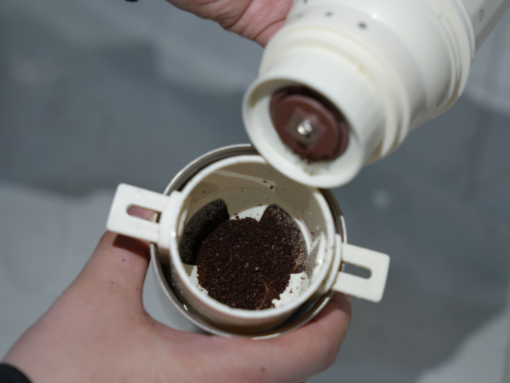 1. 倒豆:豆仓有刻度线,抓一把咖啡豆倒进去,刚好15g(再也不用称重了!);