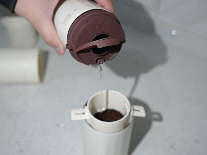 4. 萃取:装上304不锈钢滤网,倒热水等水流过咖啡粉(全程无纸滤芯,告别纸味)。