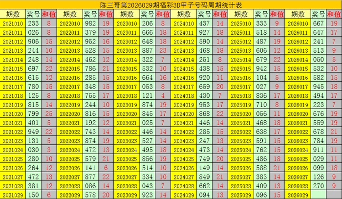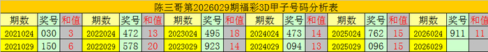 陈三哥3D第2026029期甲子号分析: