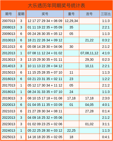 大乐透历史同期奖号统计图