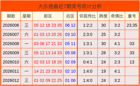 后区分析:上期后区开出号码01、06,属于奇偶数号码,本期预测有机会开出奇奇数后区号码:07、09。